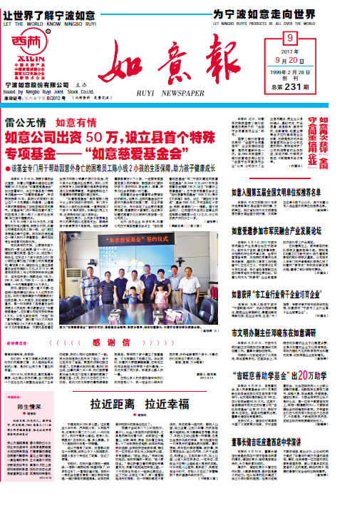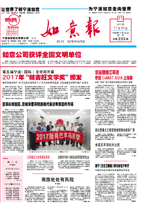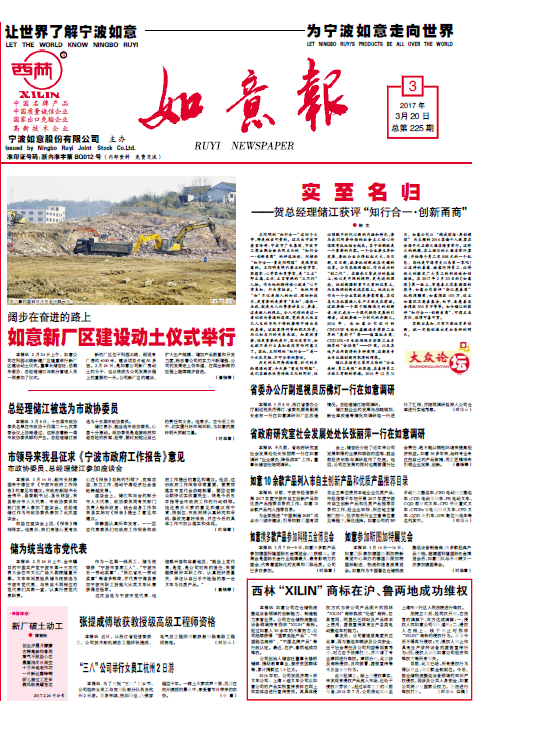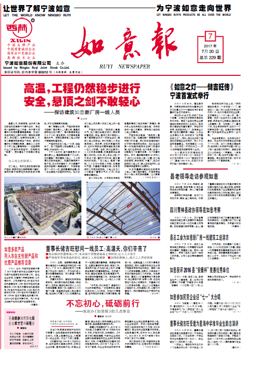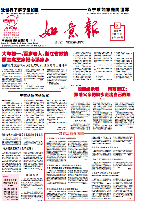 如意荣登2017年宁波企业"福布斯"榜 跻身宁波竞争力百强企业前十 获评宁波市制造业百强企业