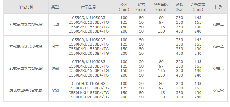 韩式宽面铁芯聚氨酯轮 /