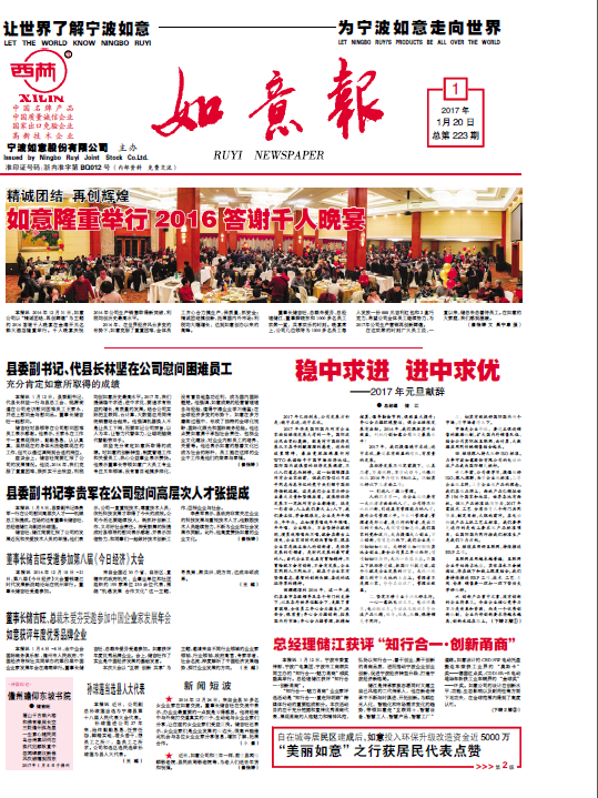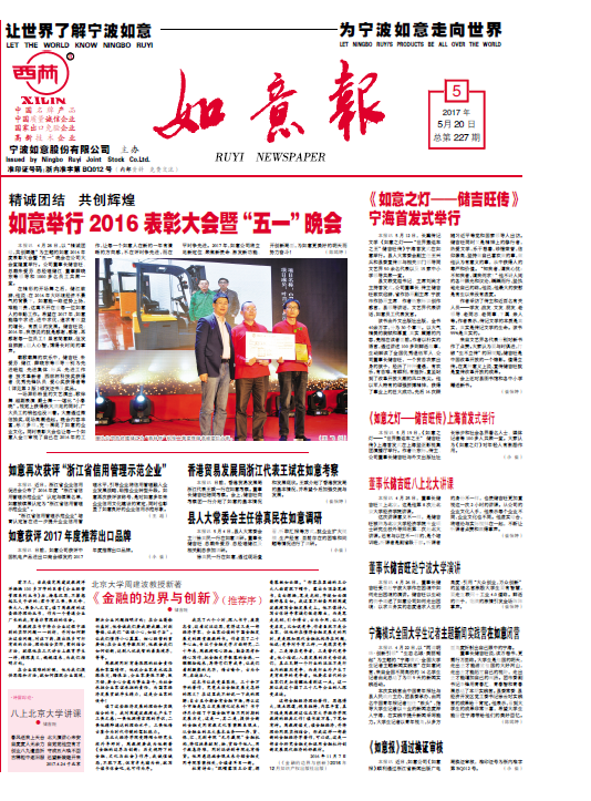 如意荣登2017年宁波企业"福布斯"榜 跻身宁波竞争力百强企业前十 获评宁波市制造业百强企业