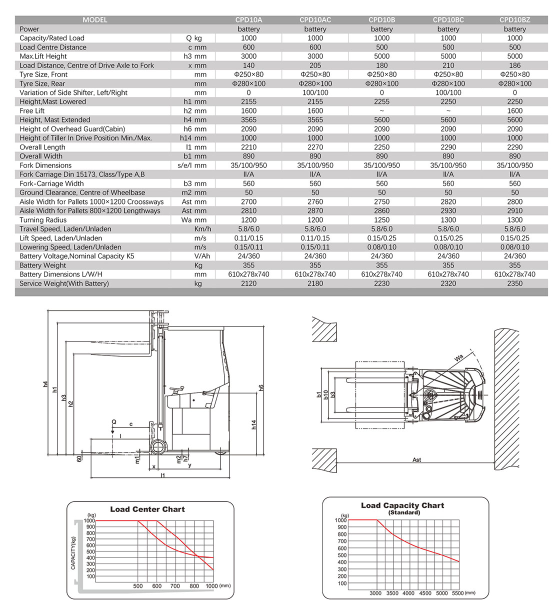 窄巷道平衡重式叉车 / CPD10A