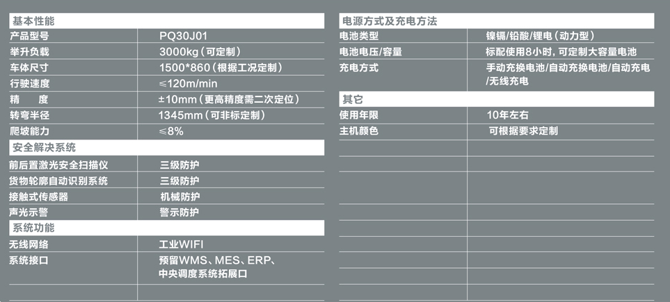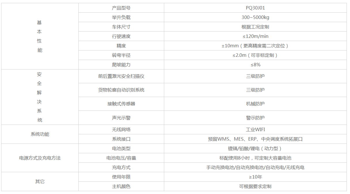 可拖挂多节重型车箱,具有完善的安全防护及声光提醒功能,配合车辆调度软件,可在具有红绿灯交通管制的车辆混杂道路等多种复杂路况安全行驶的能力。