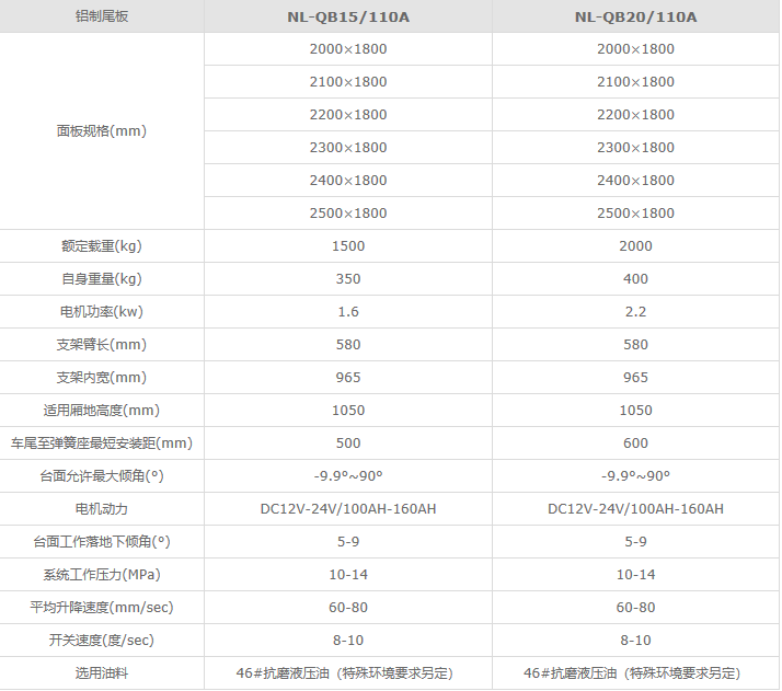 铝制尾板 / NL-QB15/110A