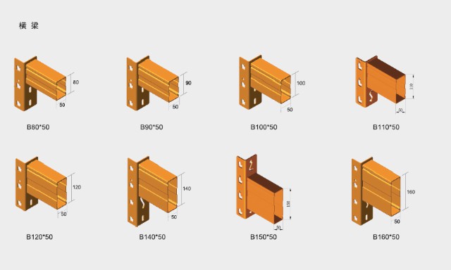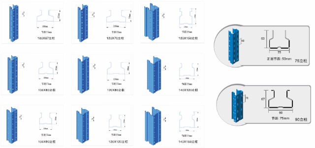 立柱片深度一般800~1100mm,高度可达11m,横梁长度一般为2300mm,2500mm,2700mm,3300mm叉车通道一般2200mm~3800mm,按所选配叉车及托盘尺寸可以度身定制。