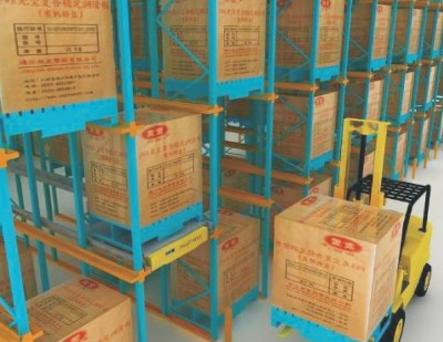 穿梭车式货架是由叉车、穿梭车、货架等组成的一种半自动化的存储系统。操作过程是:采用叉车,将穿梭车放到需要作业的通道口,穿梭车可以在托盘下面的轨道间作业,不再需要叉车的帮助。放货时叉车只需将货物送至通道口的最前端的第一个货位,叉车司机只需按下遥控器的启动按钮,即可离开进行下一次作业。穿梭车接到遥控器指令后,就会按既定程序,自动地完成行驶和提升动作,并可实现自动理货、盘点等功能。